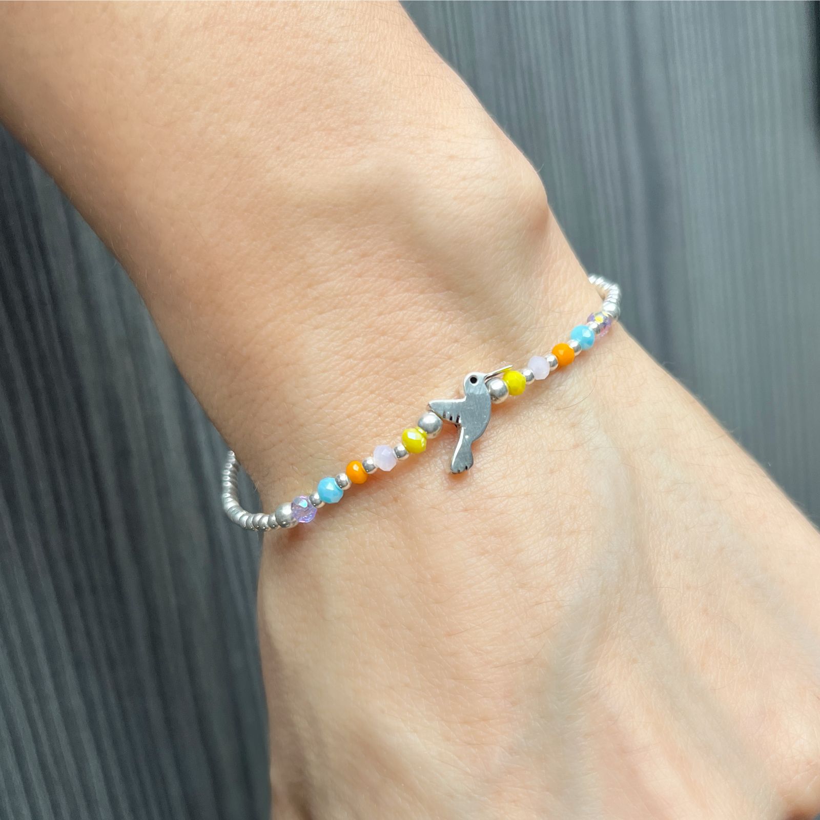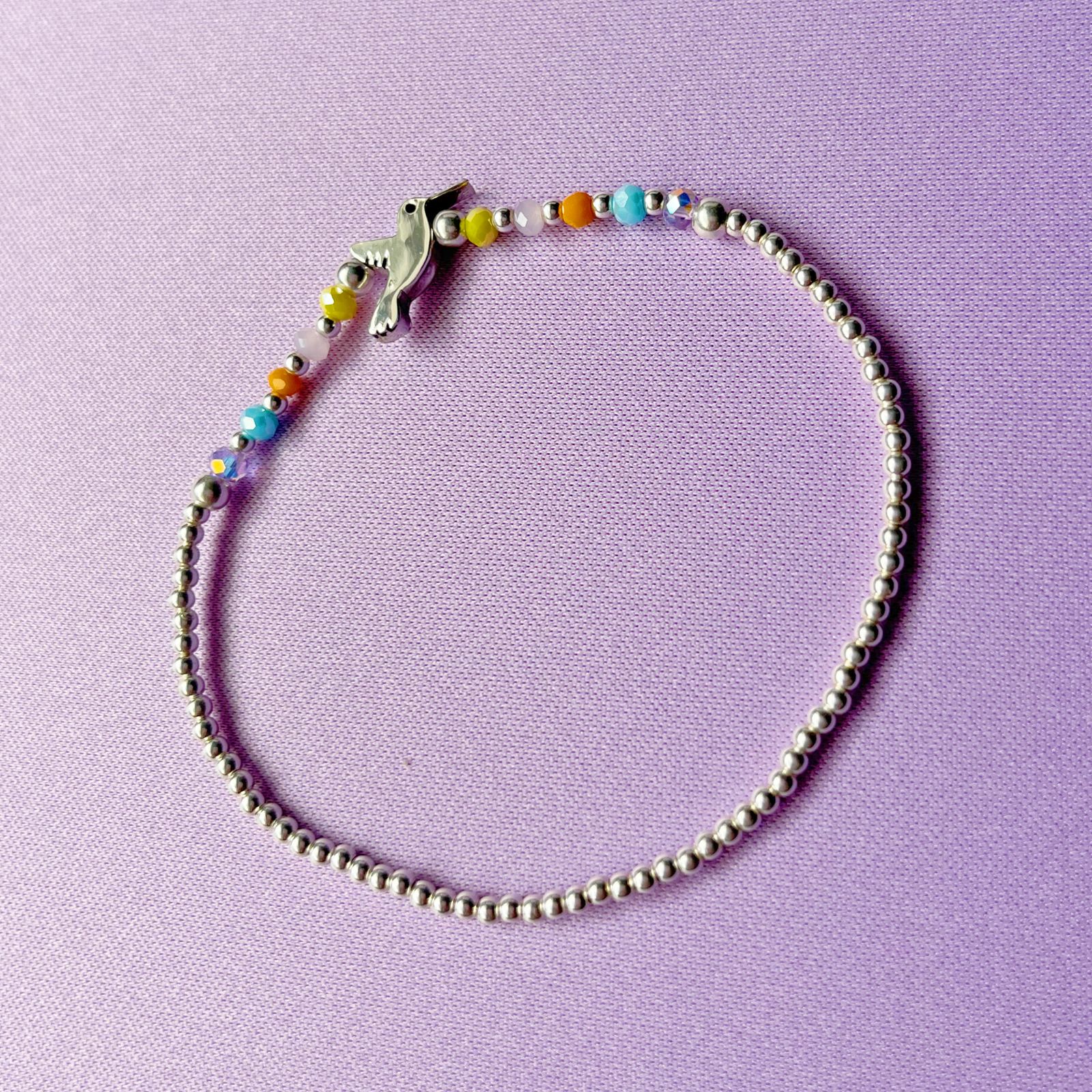 Pulsera de Plata 925 con Dije de Colibrí y Pedrería de Cristal