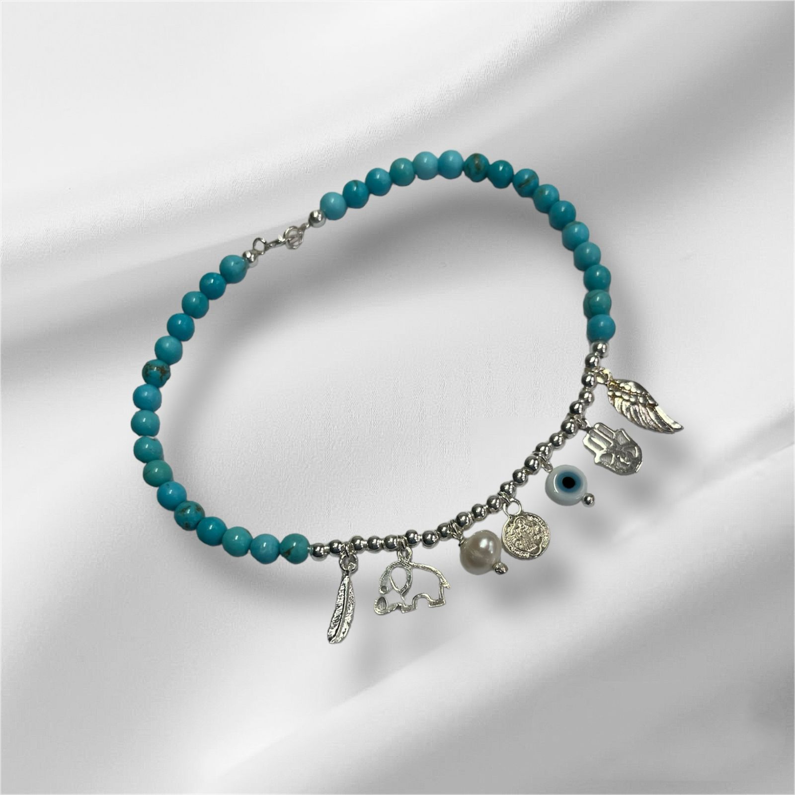 ✨ **Pulsera de Plata con Piedras Turquesa y Dijes de Protección** ✨